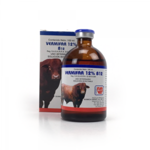 Vermifar 12 % B12 tratamiento para animales parasitados con vermes gastrointestinales y pulmonares, esta adicionado con vitaminas y complejo B.